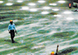 Construction workers pass by the National Aquatic Center, dubbed the "Water Cube", in Beijing November 14, 2006. The installation of inflatable films of the center has been completed and the construction is expected to finish by the end of 2007.[newsphoto]