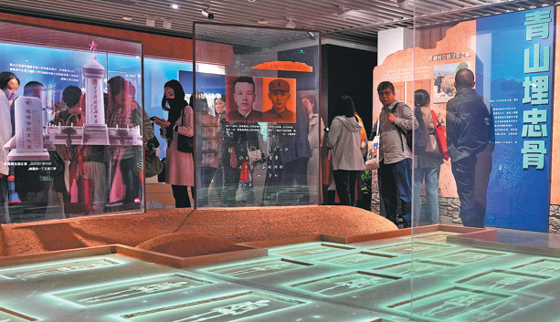 "Through the 'tree of life' and the big numbers showing the military and civilian casualties during the war, the exhibition conveys the theme of the undying spirit, guiding visitors to reflect, remember and carry on the legacy," Qu said. "The earth beneath the tree comes from the three locations involved in the exhibition's stories."