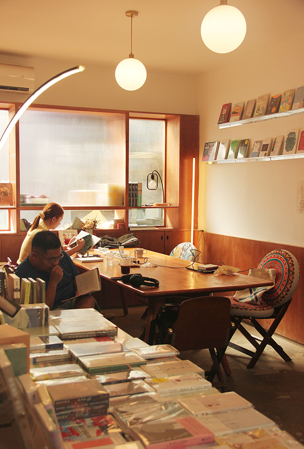 Readers enjoy an immersive reading moment at Possibly Books in April. [Photo provided to China Daily]