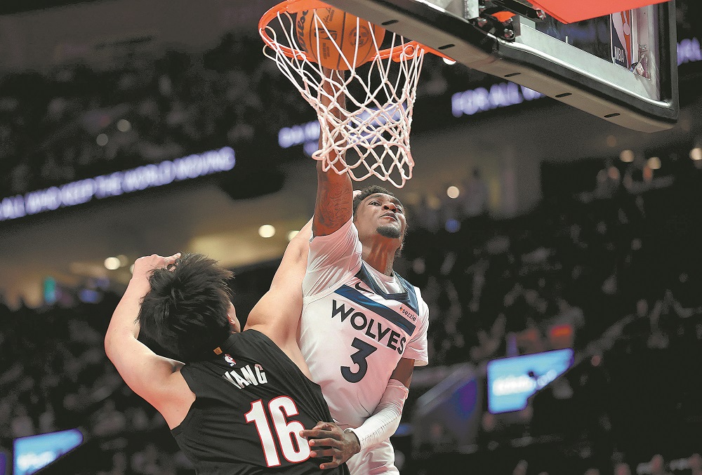 Four minutes and 47 seconds into the Portland Trail Blazers' season opener against the Minnesota Timberwolves, Yang, Portland's No 16 draft pick this summer, opened a new chapter in the history of Chinese basketball after stepping into the game as a substitute for starting center Donovan Clingan, to play in his first regular season NBA game.