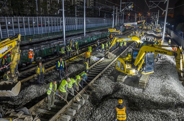 On the site, the builders not only need to make line connections, but also have to complete multiple tasks such as rail welding, track precision adjustment, overhead contact system renovation, and power and communication system switching.