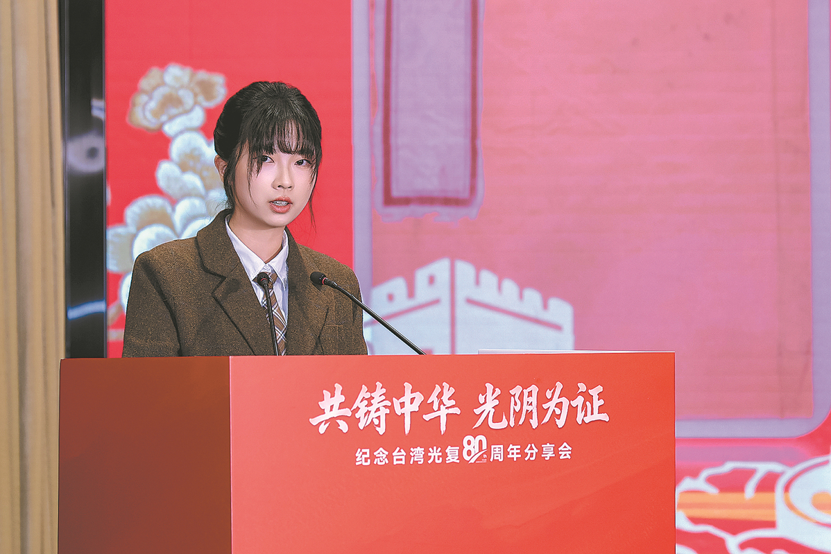 Editor's note: At a commemorative event held at the Taiwan Guild Hall in Beijing on Oct 21 to mark the 80th anniversary of Taiwan's restoration to China, four young representatives from Taiwan shared their reflections on this historical period.