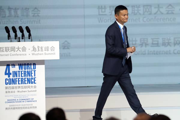 Yang Guangwen, director of the National Supercomputing Center in Wuxi, delivers a speech during the release ceremony for world leading internet scientific and technological achievements in Wuzhen, East China's Zhejiang province, Dec 3, 2017. The 4th World Internet Conference opened in Wuzhen on Sunday. [Photo/Xinhua] |