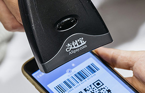 An employee scans a quick response (QR) code displayed on Alipay app at a store in Hong Kong. [Photo/VCG] |