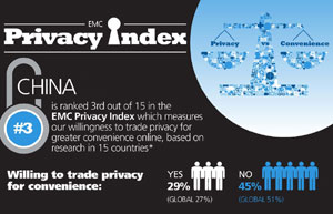 Although 68 percent of Chinese users have experienced data breach, many do not take the steps needed to protect their privacy, said EMC Corp.