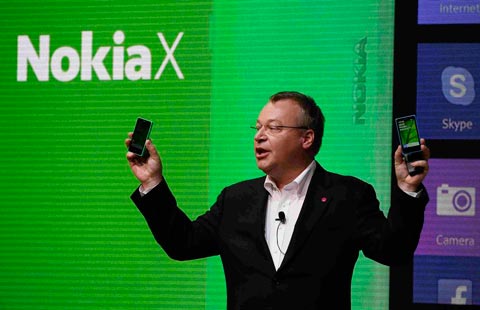 Nokia Chief Executive Stephen Elop unveils the Nokia X at the Mobile World Congress in Barcelona