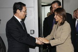 China's President Hu Jintao greets schoolchildren during a welcoming ceremony at the Presidential house in San Jose November 17, 2008.