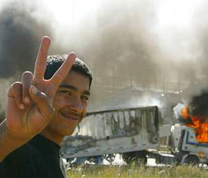 Iraqi flashing the "V" Updated: 2004-04-12 10:26