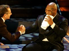 At one point, Tyson brushed Bonolis's hand off the boxing champ's