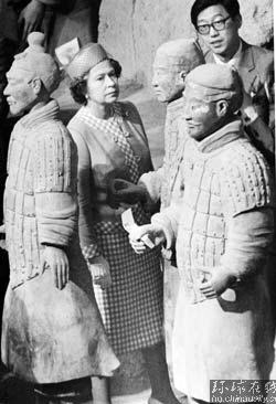 1986年10月16日,女王到訪中國(guó),參觀秦兵馬俑。
