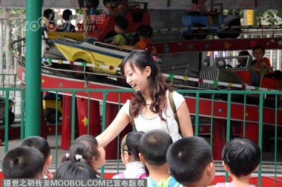 照片中,“幼教美眉”不停的注意著小朋友們的安全,同時(shí)神情并茂的向小朋友們講述在游樂(lè)園游玩小車的時(shí)候,應(yīng)該怎么操作。雖然只是和一群小朋友們打交道,但是“幼教美眉”明顯傾注了自己的愛(ài)心。