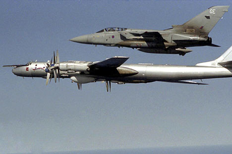 英國皇家空軍兩架“狂風(fēng)”F3戰(zhàn)斗機從位于范夫的盧哈斯空軍基地緊急起飛,在國際領(lǐng)空進行攔截。當時,英、俄雙方飛機的彼此距離很近,但駕駛員沒有進行無線電聯(lián)系。在英國戰(zhàn)斗機“護送”飛行15分鐘后,俄軍的“熊”式轟炸機才調(diào)轉(zhuǎn)方向,向摩爾曼斯克的基地飛回去。