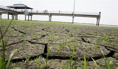 由于嚴重的干旱,奧基喬比湖水位達到70多年來的新低,部分河床暴露出來,一些遺跡也重見天日。(資料圖片)