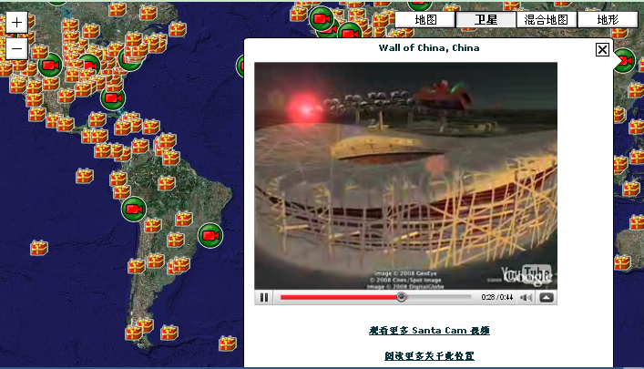 從去年開(kāi)始,谷歌成為 “NORAD 跟蹤圣誕老人”項(xiàng)目的合作伙伴,孩子們可以通過(guò)谷歌地圖或谷歌地球等網(wǎng)上軟件跟蹤圣誕老人。在去年的圣誕節(jié),有200多個(gè)國(guó)家的1000多萬(wàn)人登陸了這個(gè)網(wǎng)站。