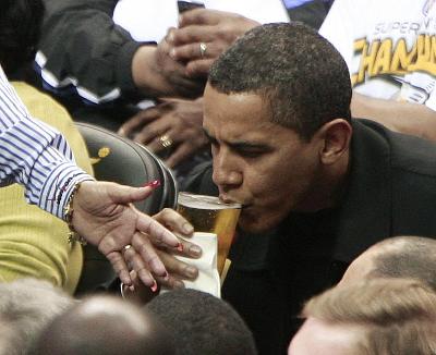 奧巴馬向觀眾微笑揮手,隨后坐在觀眾席第一排欣賞比賽,期間還悠然自得地喝起了啤酒。他在中場休息時拜訪了奇才隊老板波林,稍后回到座位上繼續(xù)看球。不管是哪方有精彩表現(xiàn),他都非常禮貌地鼓掌,并沒有因為公牛隊進球而高興得從椅子上站起來,也沒有因為對裁判吹哨不滿而向周圍人抱怨。奧巴馬最“興奮”的動作要算和坐在身旁的奇才小球迷數(shù)次擊掌慶祝了。