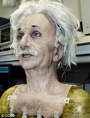 中國日報網(wǎng)環(huán)球在線消息:乍一看那個長著濃密胡須和一頭亂蓬蓬銀灰色頭發(fā),有著豐富表情的“人”,你也許會以為是已故科學家阿爾伯特·愛因斯坦正活生生地站在你的面前。可仔細一看才發(fā)現(xiàn),這只是一個會微笑、眼珠會四處轉(zhuǎn)動,可以與你交流“感情”的仿真機器人。