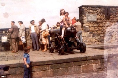 還有一張照片是22年前在一個(gè)城堡拍攝的,圖中出現(xiàn)了一個(gè)身穿制服的無(wú)頭鬼的透明輪廓(見(jiàn)圖二)。懷斯曼教授說(shuō):“拍照片的人完全相信,這是一個(gè)在城墻附近游蕩的無(wú)頭鬼,或許因?yàn)楹⒆觽冊(cè)诖笈谏贤嫠H撬桓吲d了。但實(shí)際上這只是二次曝光的結(jié)果。”