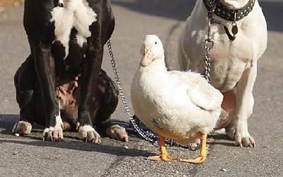 中國日報網(wǎng)環(huán)球在線消息:據(jù)英國《每日電訊報》3月17日報道,英國多西特郡一戶人家養(yǎng)了一只“迷糊”鴨子,它以為自己是條狗,并在主人遛狗的時候形影不離。現(xiàn)在,它終于被家里的兩條寵物犬所接納,每天都會一同外出散步,這在當?shù)匦纬闪艘坏李H為有趣的風景。