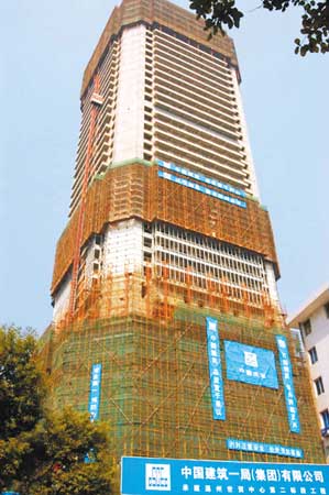 溫州世貿(mào)中心大廈,設(shè)計高達(dá)68層,廣告語稱“新溫州坐標(biāo),新財富焦點(diǎn)”,被稱為溫州第一高樓。