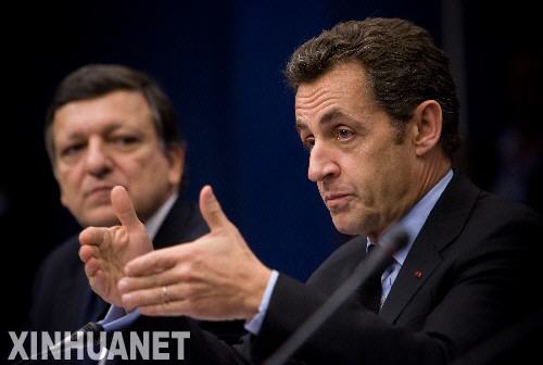 11月7日,在布魯塞爾歐盟總部,歐盟輪值主席國法國總統(tǒng)薩科齊(右)和歐盟委員會主席巴羅佐出席新聞發(fā)布會。歐盟國家領(lǐng)導(dǎo)人當(dāng)日在布魯塞爾舉行非正式會議。薩科齊在會后宣布,歐盟將在即將召開的華盛頓金融峰會上就改革現(xiàn)行國際金融體系以及其他應(yīng)對金融危機(jī)的舉措提出建議。新華社記者徐金泉攝