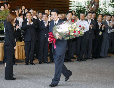 安倍政府自去年9月成立以來,不斷出現(xiàn)內(nèi)閣成員的財務(wù)、言論丑聞,特別是厚生勞動省社會保險廳丟失5000多萬份養(yǎng)老金交納記錄一事敗露,導(dǎo)致自民黨在參議院選舉中慘敗。在民眾關(guān)注民生問題之際,安倍的施政重點卻集中在修憲、派兵和教育基本法改革等政治領(lǐng)域,終于民心盡失。