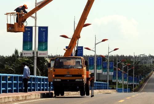 4月8日,工作人員在通往博鰲亞洲論壇會(huì)場(chǎng)的道路上檢查路燈。 2008年博鰲亞洲論壇年會(huì)將于4月12日召開(kāi),目前論壇會(huì)議準(zhǔn)備工作已經(jīng)就緒,靜候嘉賓。新華社記者姜恩宇攝