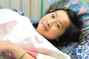 來廣州已十天有余了,白天探視時(shí)間,康潔很開心,零食、衣服、玩具都可以讓康潔這個(gè)只有11歲的女孩眼睛興奮一陣子,她收到的公仔已經(jīng)擺滿了病房里的三張病床。