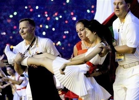 克日什托菲亞克說(shuō):“當(dāng)火炬正往我這個(gè)方向靠近的時(shí)候,我聽(tīng)到了有人呼救?!痹瓉?lái)是貝婭塔?米科瓦伊奇克看到一名中國(guó)女孩跌倒在地,出聲求救。這名中國(guó)白衣女孩是在運(yùn)動(dòng)員入場(chǎng)時(shí)的禮儀姑娘之一,由于冒著高溫在場(chǎng)邊連續(xù)跳舞而跌倒。
