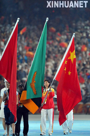 2008年8月24日,2008年北京奧運(yùn)會在國家體育場——“鳥巢”隆重閉幕。這是閉幕式上中國羽毛球名將張寧手舉五星紅旗入場。新華社記者王雷攝