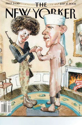 中國日報網(wǎng)環(huán)球在線消息:美國大選日益臨近,美國媒體也變得越來越熱鬧。7月14日出版的《紐約客》雜志的封面漫畫把奧巴馬及其夫人描繪成了恐怖分子,引發(fā)軒然大波。雖然該周刊辯解稱,這是在諷刺奧巴馬對手的抹黑行為,但民主黨和共和黨陣營對這幅漫畫卻異口同聲地表達了不滿,可謂兩邊不討好。