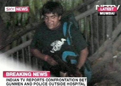 26日夜間的電視畫(huà)面截圖--孟買(mǎi)恐怖襲擊嫌疑人