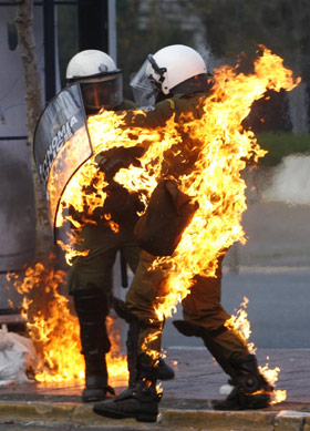 希臘政府對(duì)付騷亂用光催淚彈 歐洲青年揚(yáng)言鬧革命