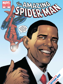 Marvel Comics主編喬?克薩達(dá)稱,在當(dāng)選總統(tǒng)奧巴馬表示自己從小搜集蜘蛛俠漫畫后,公司就希望在故事中給他一個“特寫”,以表示對奧巴馬的高度支持。早在奧巴馬擔(dān)任國會議員時,他就在個人網(wǎng)站上發(fā)布過一張他在“超人”塑像前的照片。