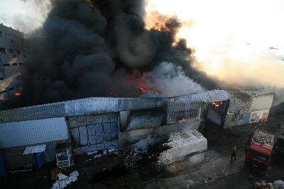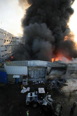 1月15日,聯(lián)合國近東巴勒斯坦難民救濟(jì)和工程處位于加沙城的辦公地點(diǎn)遭以軍炮擊后火光沖天。