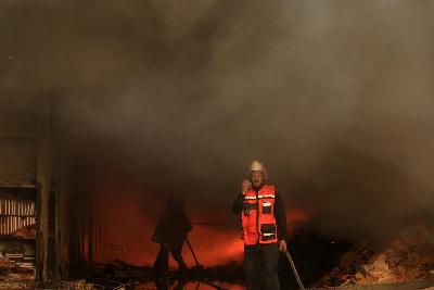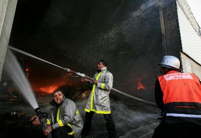 巴勒斯坦消防人員奮力滅火。(圖片來源:新華社)