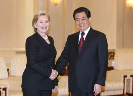 2月21日,國(guó)家主席胡錦濤在北京人民大會(huì)堂會(huì)見(jiàn)美國(guó)國(guó)務(wù)卿