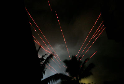 2月20日,斯里蘭卡首都科倫坡上空,軍方發(fā)射防空炮火點亮了夜空。