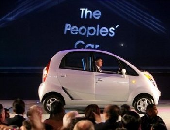 資料圖片:塔塔公司主席拉坦·塔塔在新德里車展上展示NANO