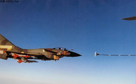 中國空軍殲-10戰(zhàn)斗機(jī)正在接受空中加油