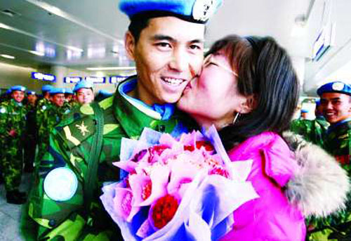 2007年1月18日,中國(濟(jì)南軍區(qū))首批赴蘇丹維和部隊的150名官兵勝利而歸,在濟(jì)南機(jī)場受到熱烈歡迎。