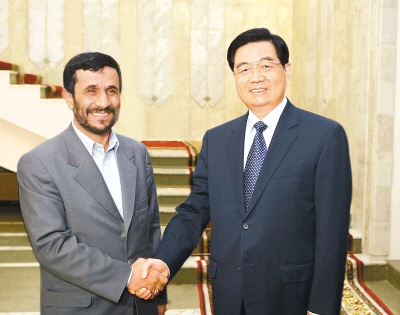 胡錦濤主席會(huì)見伊朗總統(tǒng)艾哈邁迪―內(nèi)賈德