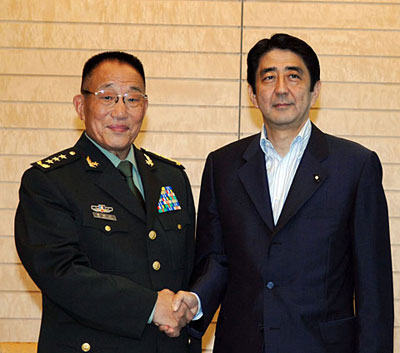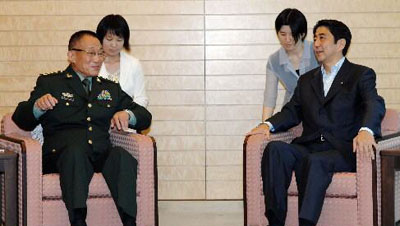 中國日報網(wǎng)環(huán)球在線消息:日本首相安倍晉三30日在東京會見了正在日本進行正式友好訪問的中央軍委副主席、國務(wù)委員兼國防部長曹剛川上將。