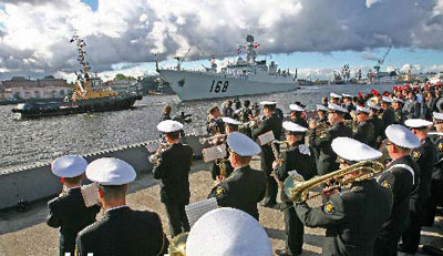 “廣州”號導(dǎo)彈驅(qū)逐艦(舷號168)和“微山湖”號綜合補(bǔ)給艦(舷號887)組成的中國海軍艦艇編隊(duì),由南海艦隊(duì)副司令員蘇支前少將任編隊(duì)總指揮。除圣彼得堡港外,艦艇編隊(duì)還將訪問英國的樸次茅斯港、西班牙的加的斯港和法國的土倫港,總航程將累計(jì)23000余海里,航行時(shí)間約為87天。