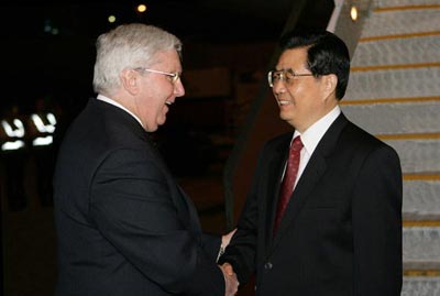 中國(guó)日?qǐng)?bào)網(wǎng)環(huán)球在線消息:國(guó)家主席胡錦濤3日抵達(dá)澳大利亞西澳州首府珀斯,開(kāi)始對(duì)澳大利亞進(jìn)行國(guó)事訪問(wèn),并將出席在悉尼舉行的亞太經(jīng)合組織第十五次領(lǐng)導(dǎo)人非正式會(huì)議。