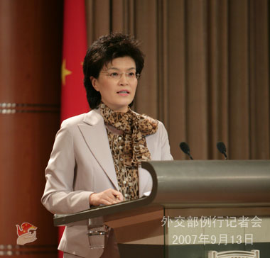 2007年9月13日,外交部發(fā)言人姜瑜舉行例行記者會,就中日關(guān)系、俄羅斯總理辭職、伊朗核問題等回答記者提問。