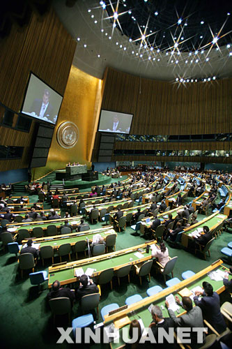 第62屆聯(lián)大拒絕將“臺灣加入聯(lián)合國”問題列入議程,這是9月18日拍攝的第62屆聯(lián)大第一次全會會場。