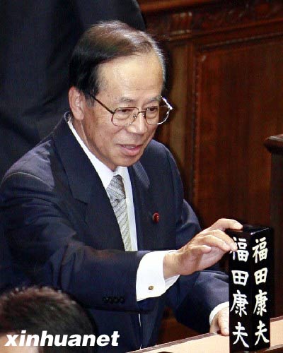 9月25日,在日本首都東京,日本自民黨新總裁福田康夫在國會眾議院的投票現(xiàn)場。日本國會眾議院全體會議當(dāng)天下午舉行首相指名選舉。在476張有效選票中,福田康夫以過半數(shù)的338票當(dāng)選新首相。新華社記者任正來攝
