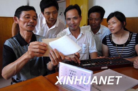資料圖片:6月27日,江西省宜豐縣石市鎮(zhèn)石崖灘村紀(jì)檢委員戴福才(左一)等在對村集體資產(chǎn)處置和費(fèi)用開支等情況進(jìn)行審核。2007年6月,江西省宜豐縣在每個村委會配設(shè)紀(jì)檢委員的基礎(chǔ)上,建立村黨風(fēng)廉政監(jiān)督臺,將監(jiān)督鏈條延伸,嚴(yán)格執(zhí)行農(nóng)村基層干部廉潔自律“十不準(zhǔn)”,建立和完善村級監(jiān)督組織,健全對村干部的監(jiān)督制約機(jī)制,完善集體財務(wù)管理制度,規(guī)范集體資產(chǎn)的處置。新華社記者宋振平攝