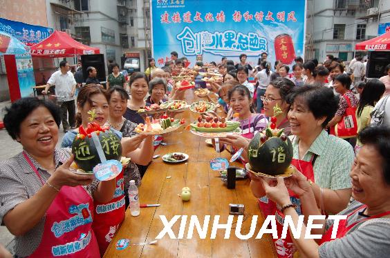 9月8日,江西省贛州市章貢區(qū)西津路社區(qū)開展“創(chuàng)意水果拼盤賽”,居民們紛紛亮出自己的手藝,互相交流學(xué)習(xí),共建文明和諧社區(qū)。新華社發(fā)(謝貴芳攝)