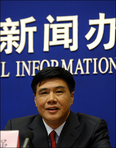 2007年9月27日上午10時,國務(wù)院新聞辦公室舉行新聞發(fā)布會,請國家發(fā)展改革委副主任張曉強介紹十六大以來中國高技術(shù)產(chǎn)業(yè)發(fā)展情況,并答記者問。圖為張曉強介紹有關(guān)情況。(新華網(wǎng)陳競超 攝)